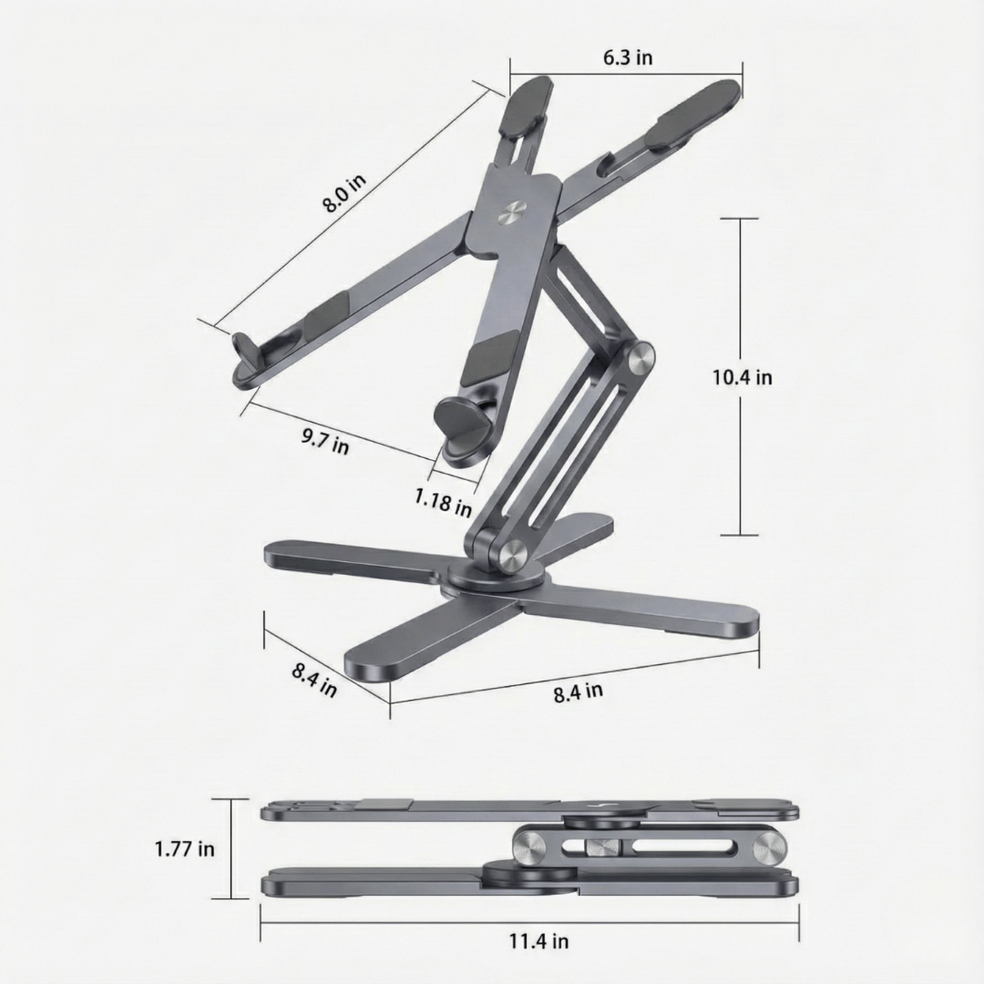 Standix – Pro Stand is a premium aluminum laptop stand designed for stability, comfort, and everyday productivity. Its foldable, adjustable design helps improve posture while keeping your workspace clean, modern, and organized.