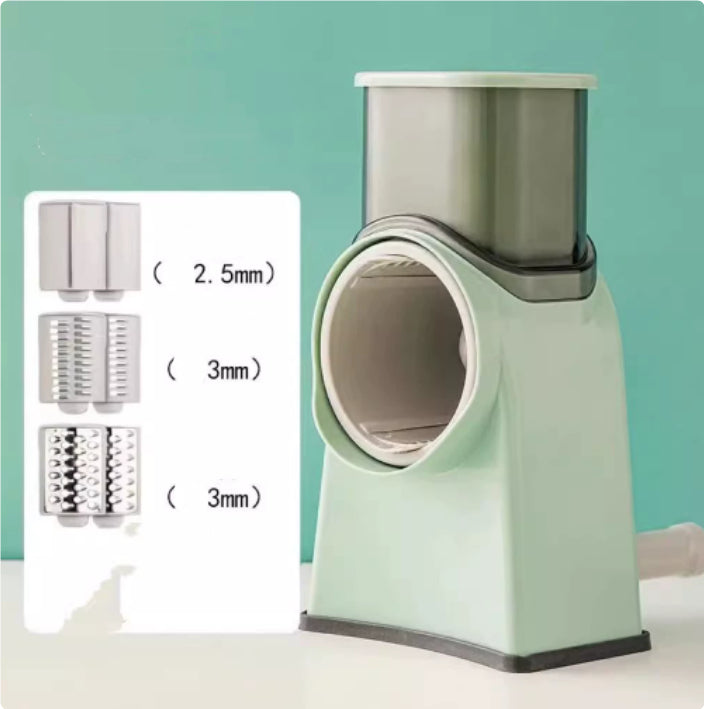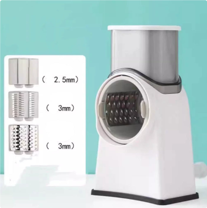 TurboGrate Multi-Cutter uses a powerful rotating drum system and interchangeable stainless-steel blades to prep food in seconds — with zero mess and no risk to your fingers.